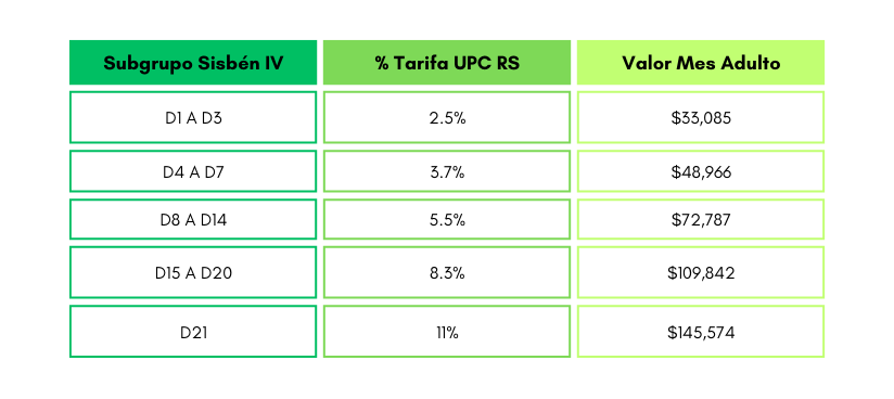 Si te encuentras sisbenizado y clasificado en el grupo D, puedes acceder al régimen subsidiado mediante contribución Solidaria, este mecanismo cubre los integrantes de grupo familiar pagando una tarifa definida por el Ministerio de Salud para los beneficiarios mayores de 18 años. En cumplimiento al decreto 616 de 2022. Consulta las tarifas aquí: